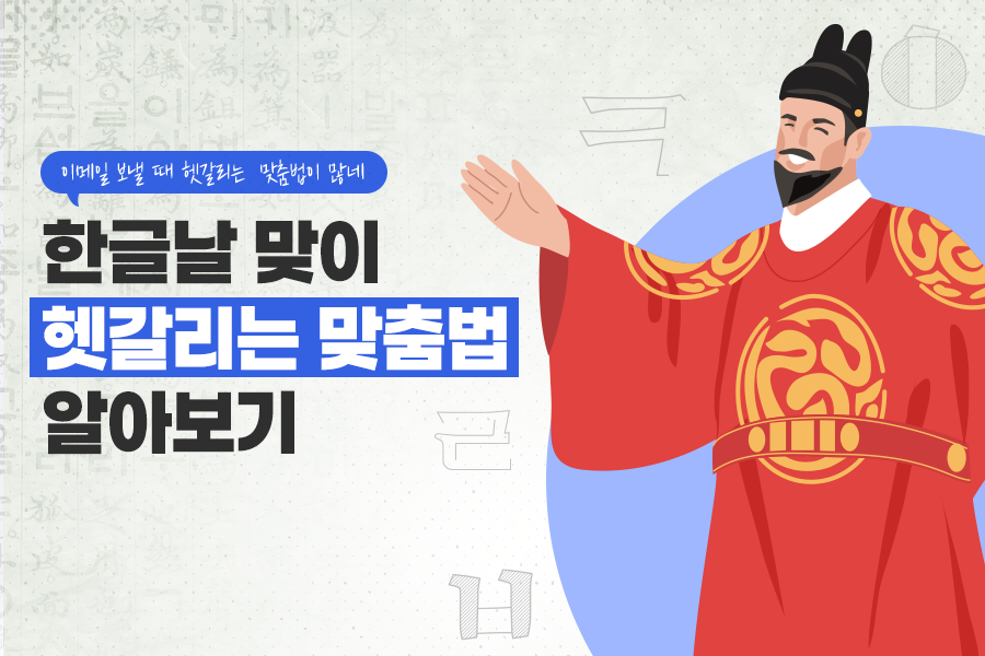 이처럼 우수한 한글은 우리 일상 속에서 누구나 자연스럽게 사용하고 있지만, 직장 생활처럼 정확한 의미나 격식을 차려 이야기해야 하는 상황에서는 헷갈리는 맞춤법이 종종 있습니다. 특히, 이메일이나 메신저를 통한 소통에서 맞춤법을 잘못 사용해 실수를 하는 경우도 있죠. 그래서 이번 기회에 일상이나 직장에서 자주 헷갈리는 맞춤법을 정리해 보았습니다.