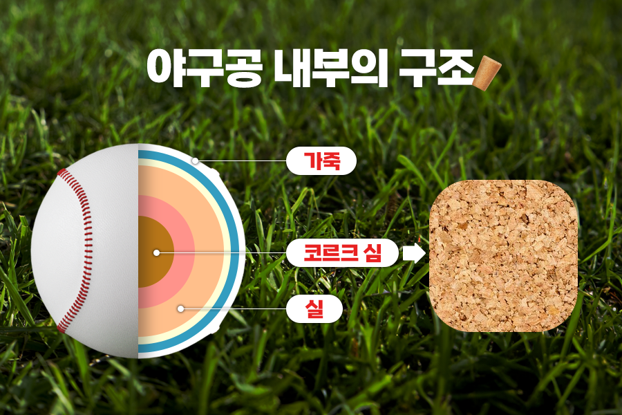 코르크는 야구공 내부에서 공의 탄성과 적절한 무게를 유지하고, 반발력에 직접적인 영향을 미칩니다. 그렇다면 왜 다른 소재가 아닌 코르크를 사용할까요?