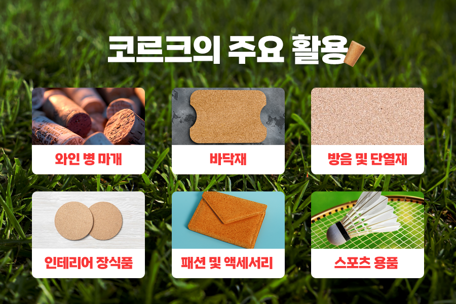 이처럼 코르크는 친환경적이고 다양한 특성을 가진 소재로, 주거 공간뿐만 아니라 산업, 스포츠, 패션 등 여러 분야에서 널리 활용되고 있습니다. 앞으로도 기술적 혁신과 환경적 가치가 결합되어, 코르크가 새로운 산업 분야에서도 더욱 다양하게 사용될 것으로 기대됩니다.