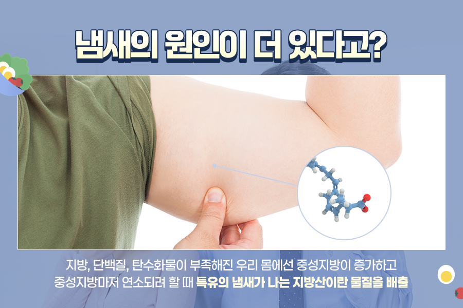 입에서 냄새가 나는 이유가 케톤체 때문만은 아닌데요. 다이어트를 하면 우리 몸에는 주 에너지원인 지방, 단백질, 탄수화물이 부족해집니다. 이로 인해 우리 몸에서는 중성지방이 증가하게 되는데요. 이 중성지방마저 연소되려고 할 때 지방산이라는 물질이 배출됩니다. 바로 이 지방산에서 안 좋은 냄새가 난다고 느껴질 수 있습니다.
