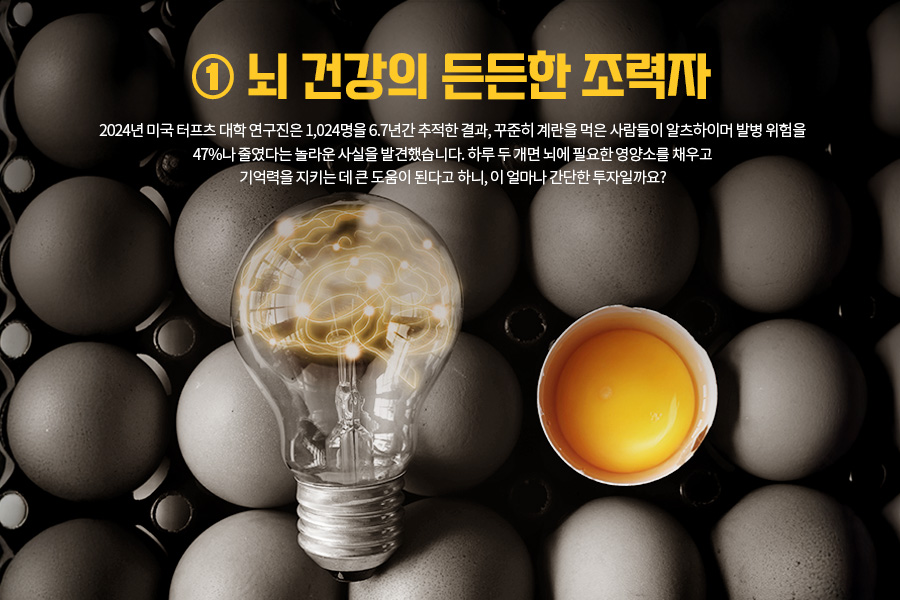 계란은 왜 이렇게 건강에 좋을까요? 계란이 우리 몸에 좋은 이유 다섯 가지를 말해보겠습니다. 먼저, 계란은 뇌 건강의 든든한 조력자입니다. 2024년 미국 터프츠 대학 연구진은 1,024명을 6.7년간 추적한 결과, 꾸준히 계란을 먹은 사람들이 알츠하이머 발병 위험을 47%나 줄였다는 놀라운 사실을 발견했습니다. 하루 두 개면 뇌에 필요한 영양소를 채우고 기억력을 지키는 데 큰 도움이 된다고 하니, 이 얼마나 간단한 투자일까요?