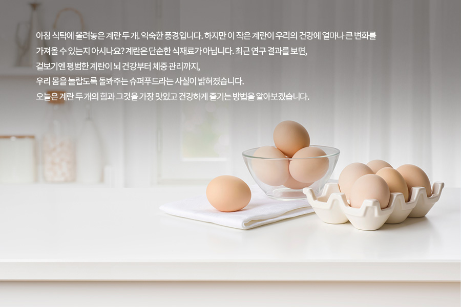 아침 식탁에 올려놓은 계란 두 개. 익숙한 풍경입니다. 하지만 이 작은 계란이 우리의 건강에 얼마나 큰 변화를 가져올 수 있는지 아시나요? 계란은 단순한 식재료가 아닙니다. 최근 연구 결과를 보면, 겉보기엔 평범한 계란이 뇌 건강부터 체중 관리까지, 우리 몸을 놀랍도록 돌봐주는 슈퍼푸드라는 사실이 밝혀졌습니다. 오늘은 계란 두 개의 힘과 그것을 가장 맛있고 건강하게 즐기는 방법을 알아보겠습니다.