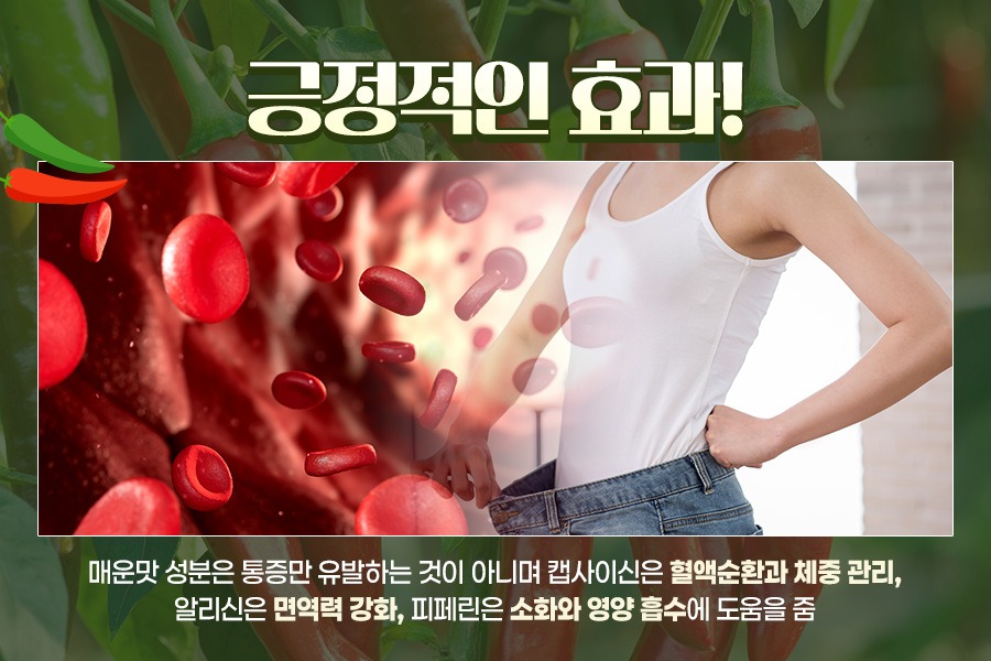 놀라운 점은 매운맛을 내는 자극 성분들이 불편한 통증만 주는 것이 아니라, 적절히 활용하면 건강과 생활에 긍정적인 효과를 줄 수 있다는 것입니다.