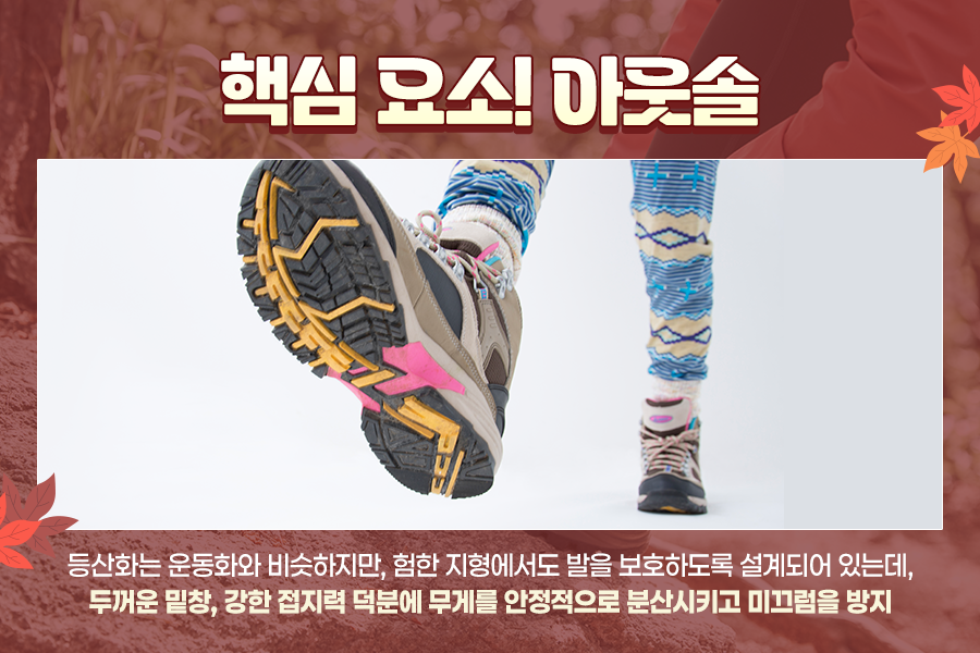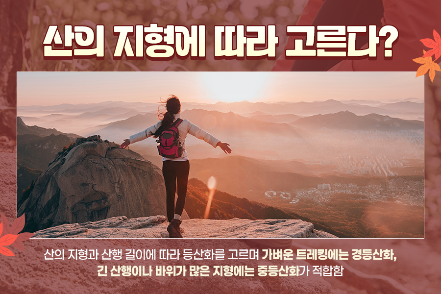 산이 알록달록 물드는 이맘때면 단풍 구경과 함께 가을 산행을 즐기는 분들이 많죠. 그런데 즐거운 산행을 위해 꼭 필요한 아이템이 있습니다. 바로 등산화!