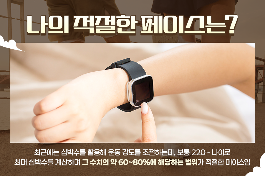 최근에는 심박수를 활용해 운동 강도를 조절하곤 하는데요. 보통 220 - 나이로 계산하며, 예를 들어 30세라면 약 190회가 최대 심박수에 해당합니다. 건강하게 운동하기 위해서는 최대 심박수의 약 60~80%의 범위 내로 유지하며 운동하는 것이 좋은데요. 이 구간에서는 심장이 효율적으로 작동하면서 몸의 부담이 덜하기 때문입니다.