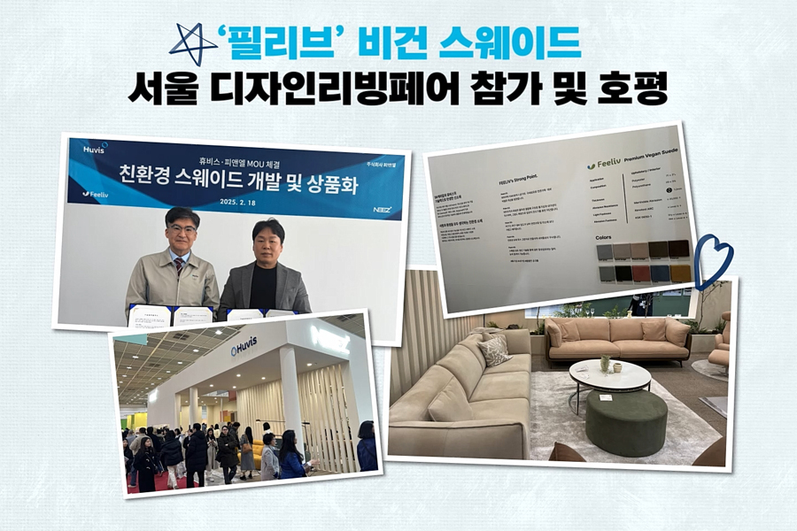 지난해 휴비스는 다양한 국내외 전시회에 참가하여 신규 거래처를 확보하고 글로벌 소재 시장 판로 개척에 힘썼습니다. 지난해 3월, 프리미엄 소파 전문기업 피앤엘과 함께 '제 30회 서울디자인리빙페어'에 참가해 친환경 스웨이드 원단 '필리브(Feeliv)'가 적용된 프리미엄 소파를 선보였으며, 11월에는 중국 항저우에서 진행된 아시아 최대 규모의 특수지 소재 전시회에 참가해 '미니맥스(Minimax)'의 다양한 라인업을 선보이며 성황리에 일정을 마쳤습니다.