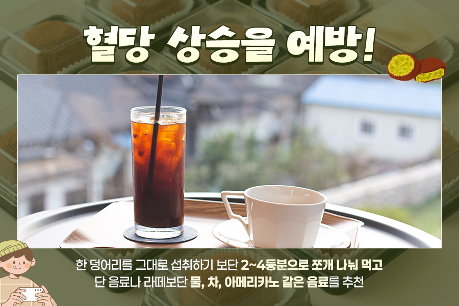 전문가들은 완전히 피하기보다는 적절한 섭취와 조절을 권하고 있는데요. 한 덩어리를 그대로 먹기보단 2등분에서 4등분 정도로 나눠 조금씩 섭취하는 것이 혈당 급상승을 줄이는 방법이라고 합니다.