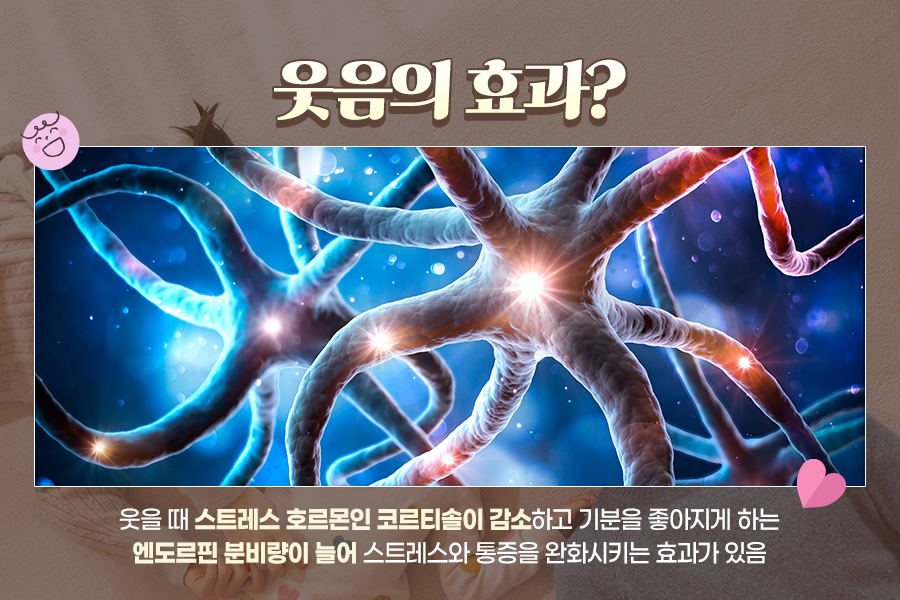 하지만 웃음 자체는 오히려 우리에게 좋다고 합니다. 웃을 때는 우리 몸의 스트레스 호르몬인 코르티솔이 감소하고 기분을 좋아지게 만드는 엔도르핀이 분비되어 스트레스와 통증을 완화시키는 효과가 있다고 하는데요.