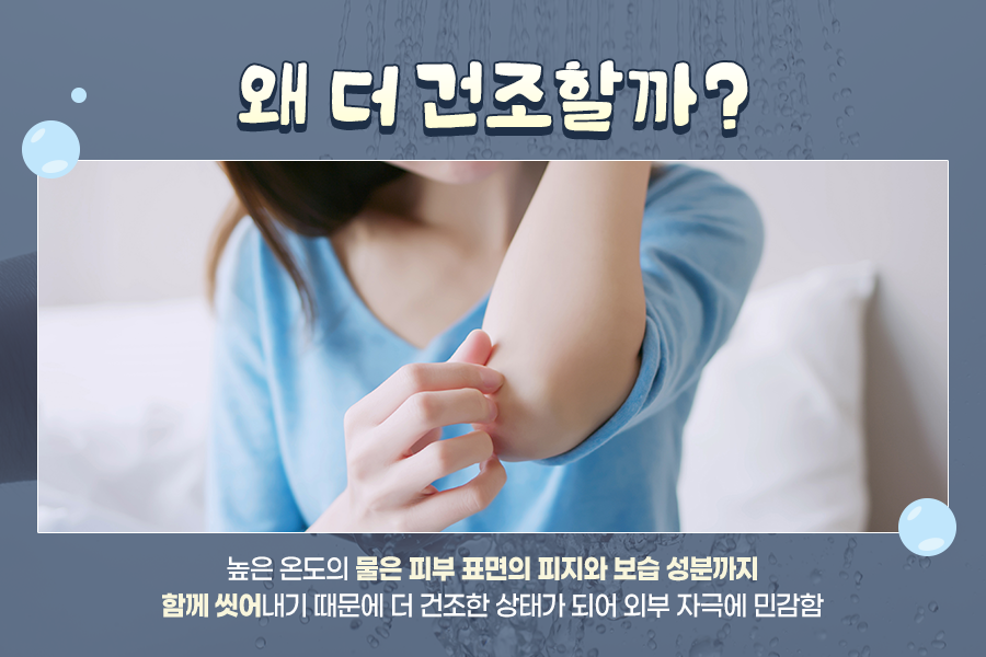 뜨거운 물로 샤워를 하고 나면, 오히려 몸이 간질간질해지는 느낌을 한 번쯤 경험해 보셨을 텐데요. 깨끗하게 씻고 나면 피부가 더 매끈해져야 할 것 같지만, 예상과 달리 건조하고 거칠게 느껴지기도 합니다.
