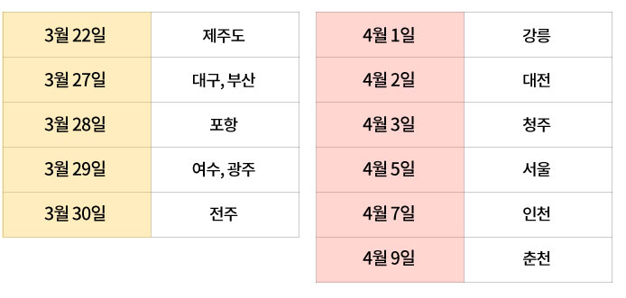 ● 2019년 지역별 벚꽃 개화 시기는 언제일까요?