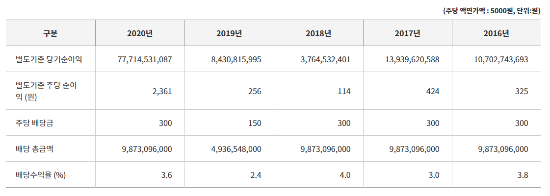 이는 시가배당률 3.6%로 배당기준일은 2020년 12월 31일이며 2021년 4월 30일 이전에 배당금이 지급될 예정입니다.