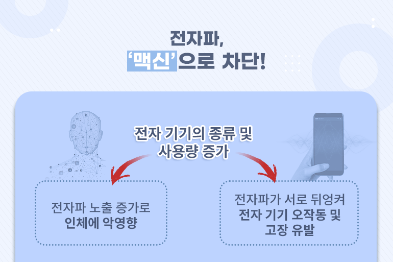 스마트폰, TV, 컴퓨터 등의 전자 기기가 늘어날수록 우리의 일상은 편리해지지만 우리의 몸은 전자파에 더 많이 노출되어 인체에 좋지 않은 영향을 미치게 됩니다. 또한 전기자동차, 드론, 사물인터넷 기기 등 전자 장비가 점차 늘어나면서 전자파가 서로 뒤엉켜 기기 오작동, 고장, 해킹 등의 가능성도 더욱 커지게 되었습니다. 이로 인해 전자파를 차단하는 ‘차폐기술’은 미래를 위해 반드시 필요한 기술로 손꼽히는데요~ 이러한 차폐기술의 핵심이 되는 신소재로 각광받는 것이 바로 지금 소개해드릴 ‘맥신’입니다.