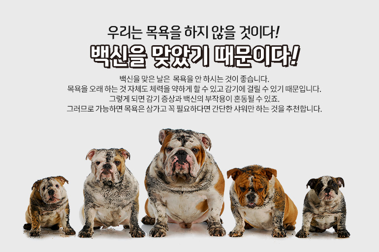 지금까지 말씀드린 세 가지 피해야 할 것 이외에도 추가로 주의해야 할 사항이 있어요. 그 첫 번째가 목욕입니다. 특히 백신을 맞은 날은 안 하시는 것이 좋습니다. 목욕을 오래 하는 것 자체도 체력을 약하게 할 수 있고 감기에 걸릴 수 있기 때문입니다. 그렇게 되면 감기 증상과 백신의 부작용이 혼동될 수 있죠. 그러므로 가능하면 목욕은 삼가고 꼭 필요하다면 간단한 샤워만 하는 것을 추천합니다.