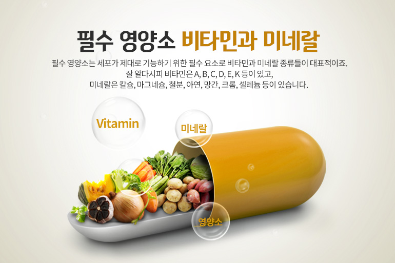 최근 건강에 대한 관심이 높아지면서 영양제를 챙겨먹는 사람들이 많아졌죠. 평소에 음식으로 섭취하기 어려운 영양소를 영양제로 보충하는 건 매우 바람직하다고 볼 수 있습니다. 필수 영양소는 세포가 제대로 기능하기 위한 필수 요소로 비타민과 미네랄 종류들이 대표적이죠. 잘 알다시피 비타민은 A, B, C, D, E, K 등이 있고, 미네랄은 칼슘, 마그네슘, 철분, 아연, 망간, 크롬, 셀레늄 등이 있습니다.