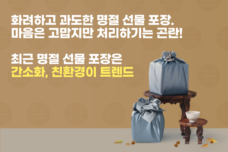 명절 선물은 화려하고, 격식을 갖춰야 한다는 인식 탓에 내용물에 비해 포장이 과한 경우가 많아요. 선물을 받는 입장에서도 마음은 고맙지만 어마어마한 양의 포장재를 처리하는 게 곤란하기도 하죠. 선물을 할 때는 가급적 포장을 최소화하는 것이 상대를 위해서도 지구를 위해서도 좋을 텐데요. 불필요한 리본 장식은 제거하고, 비닐이나 선물용 쇼핑백 대신 재사용 가능한 에코백, 보자기, 보냉 가방 등에 선물을 담으면 훨씬 깔끔하고 유용해요.