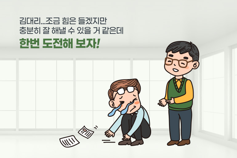 “김대리, 조금 힘은 들겠지만 충분히 잘 해낼 수 있을 거 같은데 한번 도전해 보자”
