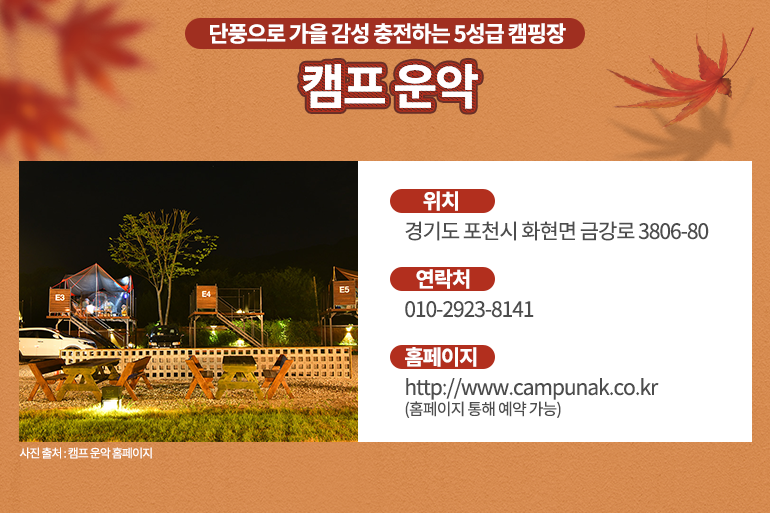 홈페이지 : https://www.campunak.co.kr (예약은 홈페이지에서 가능)