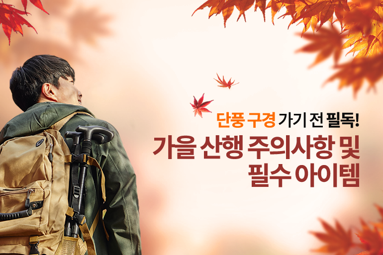 청명한 가을 날씨에 알록달록 물든 단풍을 구경하기 위해 벌써부터 전국의 단풍 명소로 손꼽히는 산에는 많은 등산객들의 발길이 이어지고 있는데요. 즐거운 마음으로 떠난 가을 산행에서 자칫 큰 사고가 발생할 수 있어 각별한 주의가 필요합니다. 실제로 최근 5년간의 등산 사고 통계에 따르면 3만 6천여건의 사고 중 약 4,800여건의 사고가 10월에 발생한 것으로 나타났죠. 그래서 오늘은 안전하고, 즐거운 가을 산행을 위한 주의사항 및 필수 아이템들을 여러분께 소개합니다.