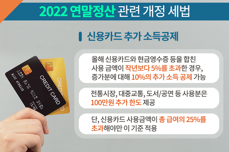● 신용카드 추가 소득공제, 기부금 세액 공제 확대! ‘2022 연말정산 관련 개정 세법’