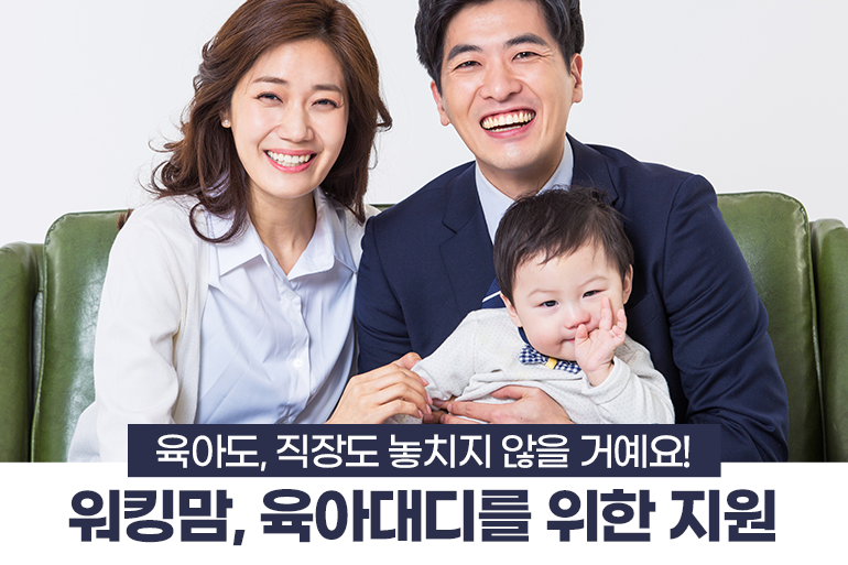 일과 육아 두 가지 모두를 잘 해내는 것은 절대 쉽지 않아요. 모든 것을 완벽하게 해야 한다는 부담감은 내려놓고, 부부가 마음을 합해 일을 적절하게 분담하는 것이 무엇보다 중요하죠. 그리고 여러분의 마음의 짐을 조금이나마 덜어줄 수 있는 다양한 정책들도 적극적으로 활용한다면 워킹맘, 육아대디도 훨씬 더 행복해질 수 있을 거예요.