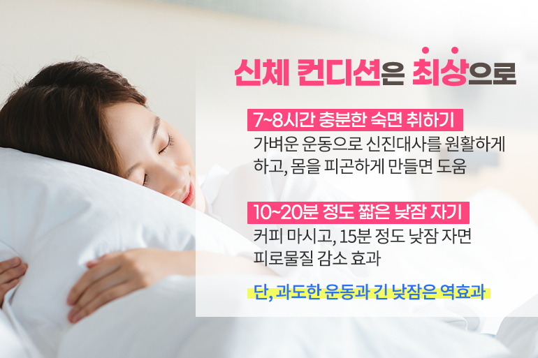 1) 가벼운 운동 후 충분한 숙면 취하기! 짧은 낮잠도 OK