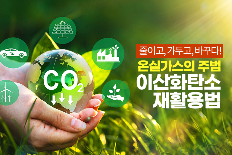 지구온난화로 인한 이상기후, 자연재해 등의 피해가 날로 심각해지고 있죠. 지구온난화의 원인인 온실가스는 80% 이상이 이산화탄소로 구성되어 있기 때문에 이산화탄소를 줄이는 것이 지구온난화 해결의 핵심인데요. 하지만 산업화된 현대 사회에서 이산화탄소 배출을 막는 것은 현실적으로 쉽지 않아요. 그래서 최근 주목하는 것이 이미 발생한 이산화탄소를 모으고, 저장해 새로운 자원으로 재활용하는 방법이죠. ‘공기 중에 떠도는 이산화탄소를 재활용한다는 게 정말 가능할까?’ 궁금하실 여러분들을 위해 다양한 이산화탄소 재활용 기술에 대해 소개해 드릴게요 😊