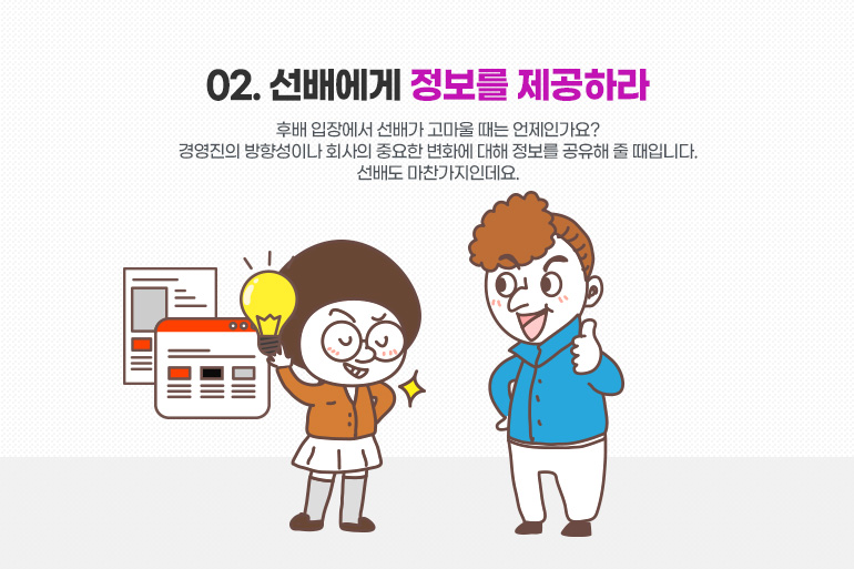 둘째, 선배에게 정보를 제공하라