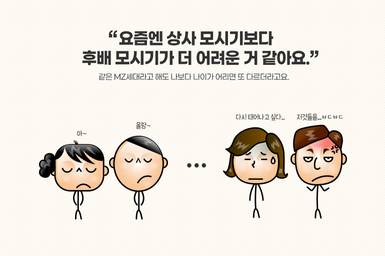 “요즘엔 상사 모시기보다 후배 모시기가 더 어려운 거 같아요. 같은 MZ세대라고 해도 나보다 나이가 어리면 또 다르더라고요.”