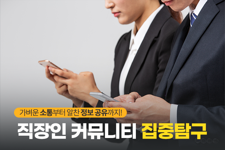 고민도 많고, 걱정도 많은 직장 생활! 직장인 커뮤니티가 직장인들의 숨통을 트여주고, 위로가 되어줄 수 있다면 그 역할을 톡톡히 해내고 있는 거겠죠. 여러분도 각 커뮤니티의 특성을 이해하고, 적절하게 커뮤니티를 활용하면서 소소한 즐거움도 찾고, 업무 능력도 키워 나갈 수 있으면 좋겠습니다 😊