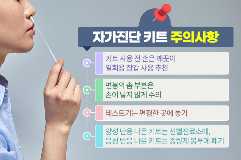 오미크론 변이 이후 코로나 바이러스 확진자가 폭발적으로 늘어나면서 고위험군만 PCR 검사를 받고, 나머지는 신속항원검사를 진행하는 것으로 진단체계가 바뀌었는데요. 이로 인해 집에서도 손쉽게 코로나 감염 여부를 확인할 수 있는 자가진단키트 사용이 확대되었죠. PCR 검사에 비해 정확도가 떨어진다는 논란은 있지만 빨리 결과를 확인할 수 있다는 큰 장점이 있는 자가진단키트! 그렇다면 자가진단키트로 코로나 바이러스 감염 여부를 어떻게 알 수 있는 걸까요?