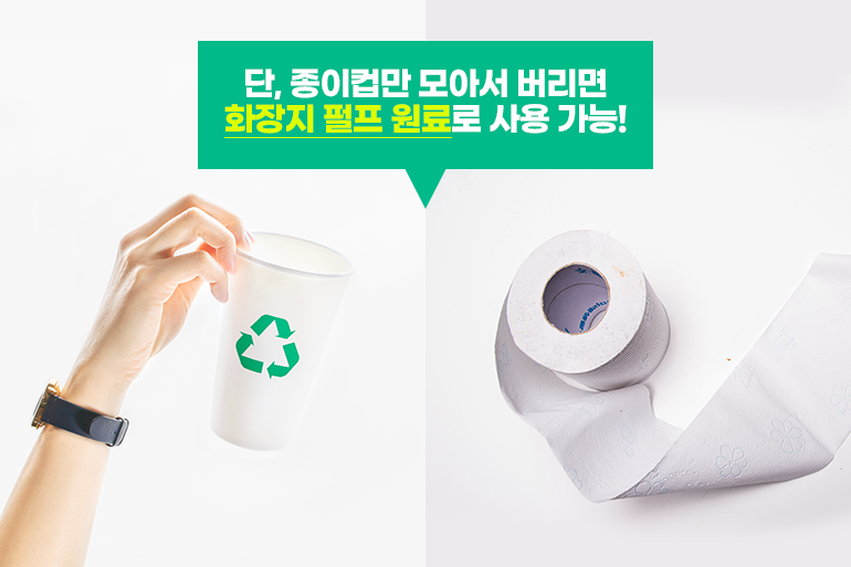 이 플라스틱 성분 때문에 종이컵은 다른 종이류에 함께 버리지 않고 일반 쓰레기로 처리하거나 종이컵만 모아서 버려야 하죠. 참고로 종이컵만 모여 있을 경우 화장지에 사용되는 펄프 원료로 사용이 가능하답니다.