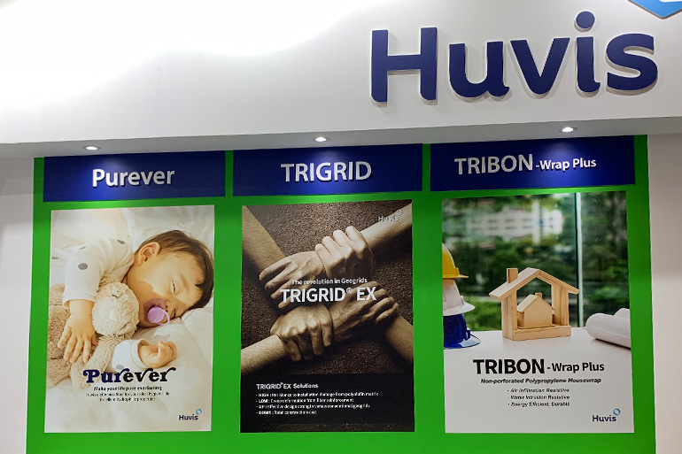 또한 광고판이나 코팅직물, 컨베이어 벨트, 로프 등으로 사용되는 PET 고강력사 ▲트리론(Triron), 뛰어난 방수력과 방풍력으로 건물 외벽을 보호하는 하우스랩 제품 ▲트리본-랩플러스(Tribon-Wrap Plus), 토목용 보강제로 사용되는 ▲트리그리드(Trigrid), 뛰어난 분산성과 형태 안정성으로 펄프의 접착성을 강화하는 역할을 하는 Short-Cut Fiber 제품 ▲미니맥스(MiniMax) 등 다양한 산업용 차별화 소재를 선보였습니다.