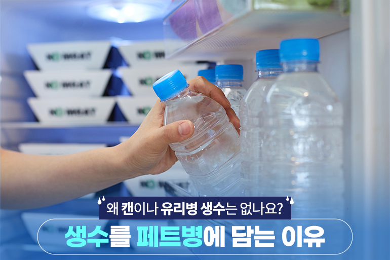 이제는 마트나 편의점에서 생수를 사 먹거나 배달시켜 먹는 경우가 흔하죠. 특히나 코로나 이후에는 정수기 사용에 제한이 생기면서 생수를 사 먹는 일이 더 많아졌는데요. 그런데 여기서 든 궁금증 하나! 다른 음료는 캔, 유리병, 종이팩 등에 담겨있는데 왜 생수는 꼭 투명 페트병에 담아서 판매하는 걸까요? 오늘은 생수와 페트병에 얽힌 다양한 궁금증을 풀어보도록 할게요.