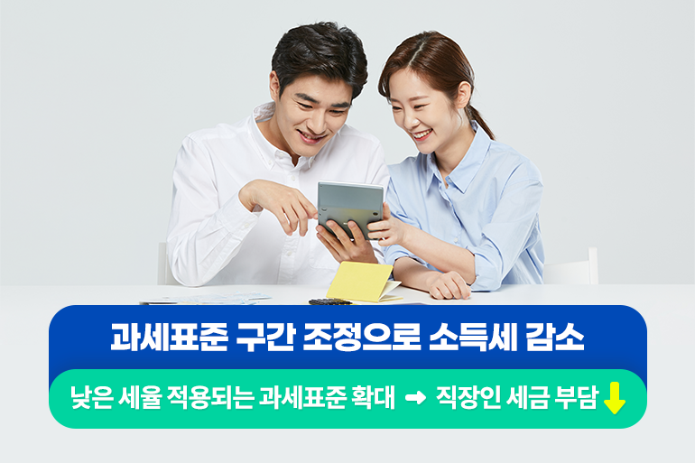 직장인들에게 소득이 발생하면 과세표준 기준에 따라 소득세를 책정하게 되는데요. 내년부터는 낮은 세율이 적용되는 과세표준이 확대되어 직장인들의 세금 부담이 줄어들 수 있게 되었어요. 쉽게 말해 돈을 더 벌어도 세금은 조금 덜 낼 수 있게 되었다는 의미죠!