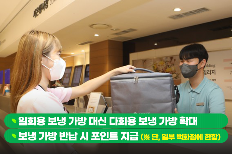 일부 백화점에서는 한 번 쓰고 버려지던 일회용 보냉 가방을 재사용 가능한 보냉 가방을 대체했는데요. 가정에서 꾸준히 사용해도 좋고, 불필요한 경우 다시 반납하면 포인트를 지급할 예정이라고 해요. 이러한 친환경 포장 제품을 선택하면 처리도 간편하고, 환경도 지킬 수 있으니 주는 사람, 받는 사람 모두 기분 좋은 선물이 될 것 같네요 😊