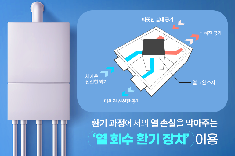 하지만 단열성과 기밀성이 높아진 만큼 환기에도 각별히 신경 써야 하는데요. 환기로 인한 에너지 손실을 막기 위해 ‘열 회수 환기 장치’를 이용하죠. 환기 장치에 열 교환소가 있어 밖으로 내보내던 따뜻한 실내 공기의 열기를 외부에서 유입되는 차가운 공기를 데우는 데 사용할 수 있답니다.