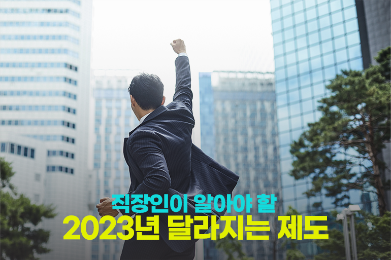 지난해에 이어 올해까지 경기 불황이 지속된다는 전망에 직장인들의 어깨는 더욱 무거워지는데요. 직장인들의 부담을 조금이나마 줄이고, 청년들의 성장에 힘을 보태기 위해 2023년부터 새롭게 시행되는 정책들이 많이 있어요. 아는 만큼 혜택도 챙길 수 있으니 ‘직장인이 알아야 할 2023년 달라지는 제도’ 자세히 살펴볼까요?