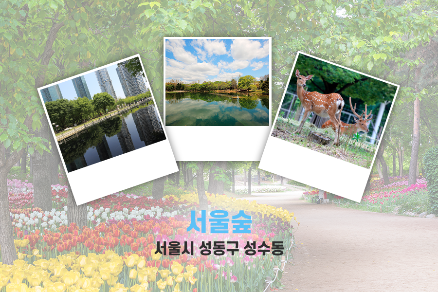 뉴욕에 센트럴파크가 있다면, 서울에는 서울숲이 있다고 할 수 있죠. 서울숲은 서울의 대표 녹지공원 중 하나로 넓은 면적의 나무숲이 잘 조성된 산책길인데요, 그중 광장 왼편에 위치한 거울연못은 서울숲 맞은편의 응봉산이 거울처럼 비치는 멋진 경관을 감상하실 수 있습니다. 또한, 5월의 대표적 꽃 중 하나인 튤립정원이 잘 조성되어 있어 예쁜 튤립을 보고 걸으며 힐링의 시간을 보낼 수 있겠습니다!