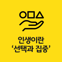 혹시 인생은 무엇이라고 생각하시나요? 여러 가지 의견이 있지만 필자는 인생이란 '선택과 집중'이라고 말하고 싶습니다. 그렇다면 선택이란 무엇일까요? 그것은 바로 '버리는 작업'입니다. 타잔이 정글에서 줄을 잡고 이동하려면 양손에 줄을 잡고 있으면 절대 앞으로 나아갈 수 없습니다. 한 손은 놓으면서 다른 한 손을 뻗는 선택을 해야 하죠. 앞으로 나아가는 것에만 집중하면 된다는 것입니다.