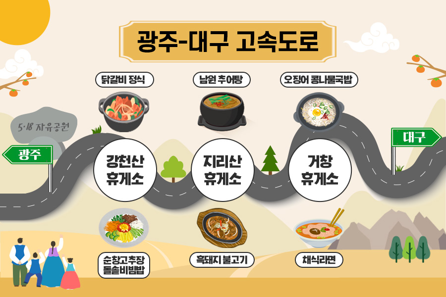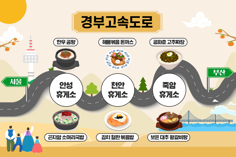 우리나라에서 가장 큰 명절인 추석이 코앞으로 다가왔습니다. 이번 추석은 임시 공휴일이 생겼다는 소식 들으셨나요? 연휴에 고향을 가시거나 여행을 떠나시는 분들이 많으실 텐데요. 많은 사람이 이동하는 만큼 교통정체가 심각해질 것으로 예상됩니다. 그래서 오늘은 휴비스와 함께 지루한 고속도로 정체를 즐겁게 만들어줄 휴게소 맛집을 알아보도록 하겠습니다.