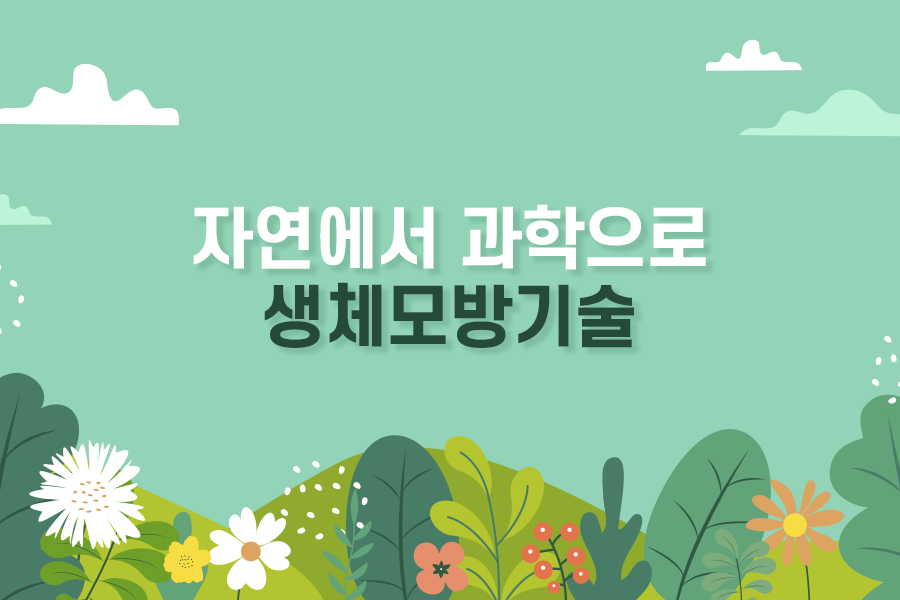 여러분은 오리발과 비행기, 낙하산이 어떻게 탄생하게 되었는지 아시나요? 이것들을 자세히 들여다보면 오리발은 오리의 발을, 비행기는 새의 날개를, 낙하산은 민들레 씨를 닮았다는 것을 알 수 있습니다. 이처럼 자연의 원리에서 가져온 특성을 모방하여 과학 기술로 발전시키는 것을 생체모방기술이라고 합니다. 이전에는 외형적인 특성을 기반으로 과학 기술에 활용했다면 요즘은 생체에 있는 미세한 특성들을 활용하여 생체 기능을 이용한 기술들이 개발되고 있다고 합니다.