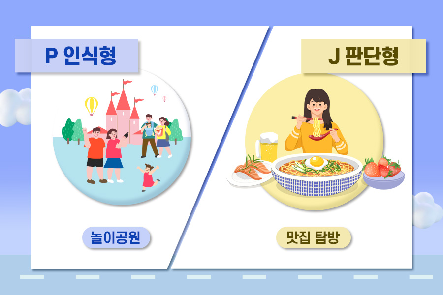 자유롭고 유연한 사고를 가진 P의 경우 언제, 어디서든 주어진 환경에 빠르게 적응하는 것이 장점입니다. 모험하는 것을 좋아하는 성격이라서 어떤 일이든 잘 받아들입니다. 이러한 성격을 가진 사람에겐 놀이공원 또는 액티비티를 즐길 수 있는 곳에 방문하는 것을 추천합니다. 활동적이고 모험적인 것을 즐기며 지친 일상에 변화를 주는 것이 좋을 것 같습니다.