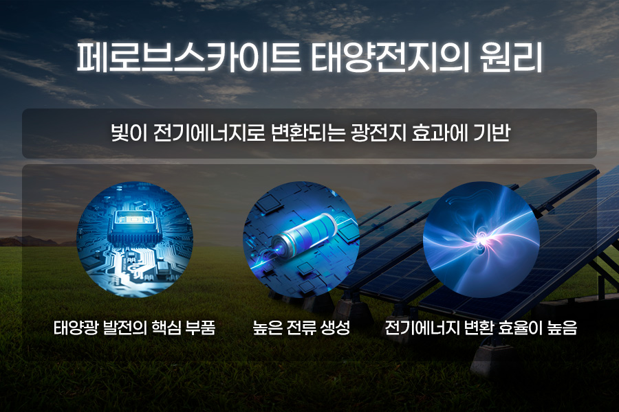 이러한 과정을 통해 세포는 빛 에너지를 전기 에너지로 변환하여 광전지 효과를 생성하는데요. 태양전지는 빛을 많이 흡수할수록 다량의 전자가 발생해 높은 전류를 만들게 됩니다. 3세대인 페로브스카이트 태양전지는 1세대 실리콘, 2세대 박막 태양전지에 비해 높은 에너지 효율과 경제성을 보유하고 있어 상용화된 미래가 기대되는 에너지입니다.