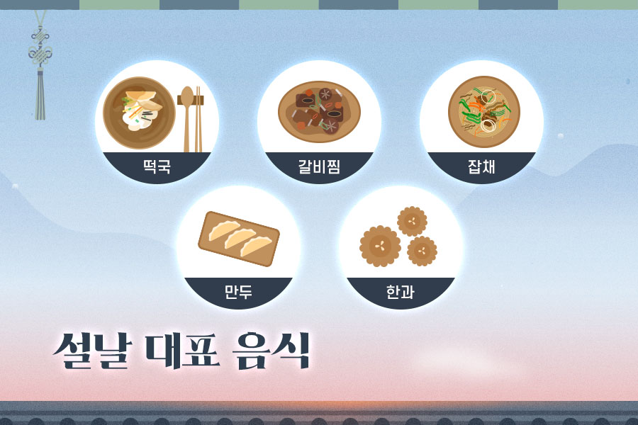 그렇다면 설 하면 떠오르는 설날 음식은 어떤 것들이 있을까요? 대표적으로 떡국, 갈비찜, 잡채, 만두, 환과 등이 있으며 이 중 떡국은 맑은 국물에 하얀 떡이 들어가 과거에는 ‘백탕’이나 ‘병탕’으로 불렸으며 떡국을 먹어야 한 살이 늘어난다고 하여 ‘첨세병’이라고도 불렸습니다.