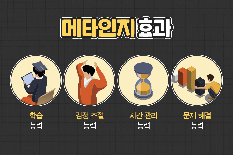 메타인지가 높으면 학습 능력과 감정 조절 능력, 시간 관리, 문제 해결 능력이 올라가 직장에서의 업무 능력 향상에 도움이 될 뿐만 아니라 전반적인 삶의 질 향상을 기대할 수 있습니다.