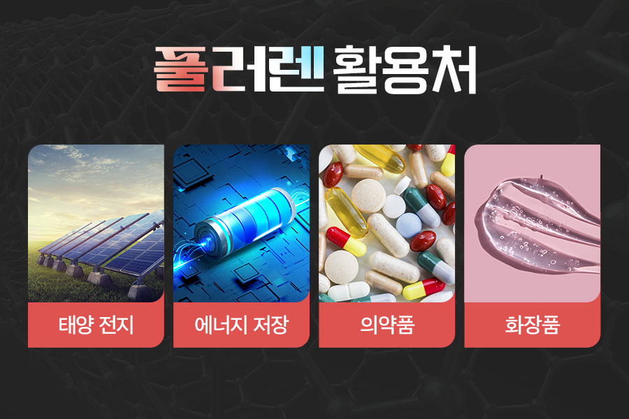풀러렌은 유기 태양 전지에서 전자 수용체로 사용될 수 있으며, 기존의 실리콘 기반 태양 전지보다 가볍고 유연하며 저렴하다는 장점이 있음.