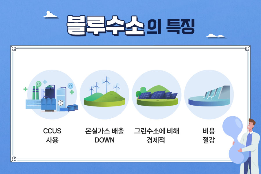 이산화탄소를 적게 배출하여 친환경적 에너지원으로 사용되는 블루수소는 여러 특징이 있는데요. 다음과 같습니다.