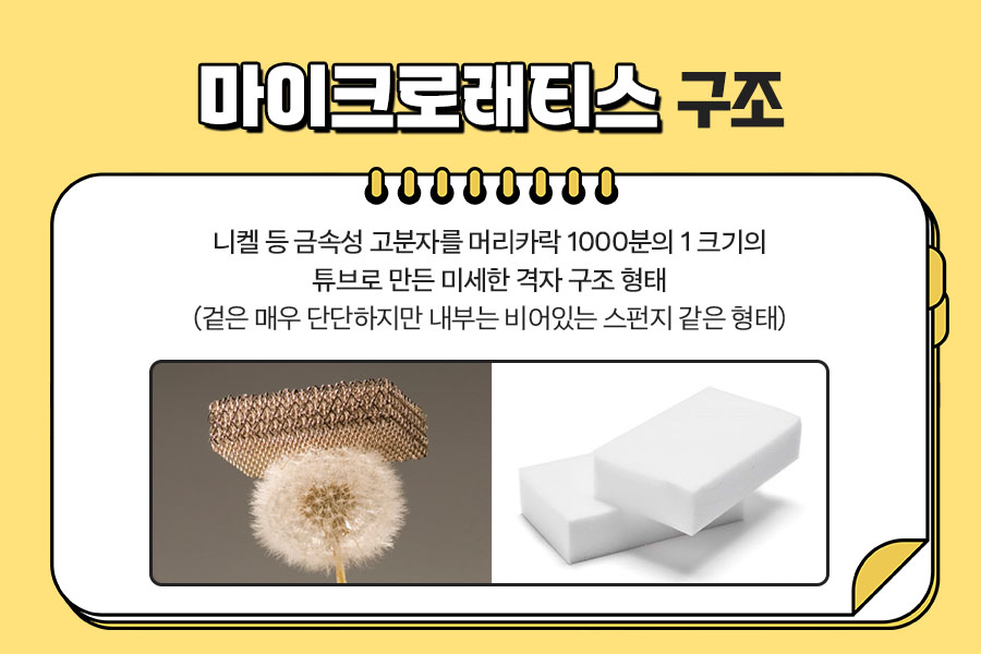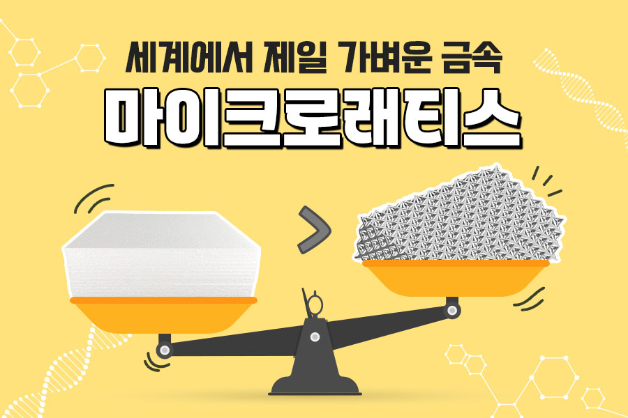 세계에서 가장 인기 있는 히어로는 누구일까요? 바로 금속으로 된 슈트를 입고 세계를 구하는 마블의 히어로 아이언맨입니다. 금속은 아이언맨뿐만 아니라 다양한 영화와 소설, 만화 등에서 단골 소재로 활용되는데요. 이러한 기발한 금속들이 이제는 상상 속에서만이 아닌 현실에서도 구현되기 시작했습니다. 그 중 하나가 깃털보다 가벼워 세계에서 제일 가벼운 금속으로 불리는 '마이크로래티스'입니다.