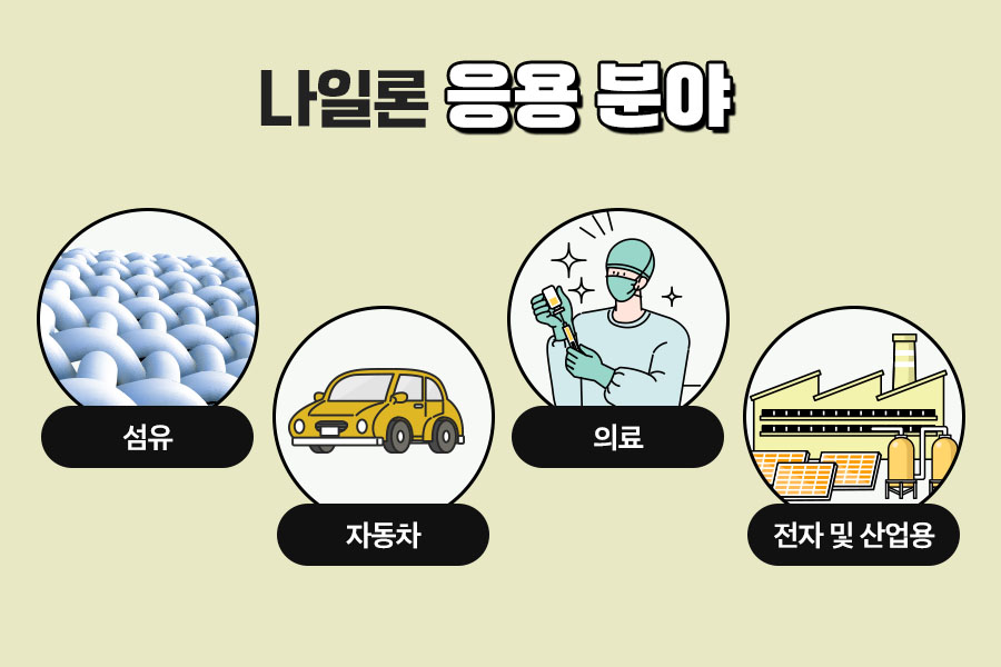 나일론의 주요 응용 산업을 살펴보면 다음과 같은데요.