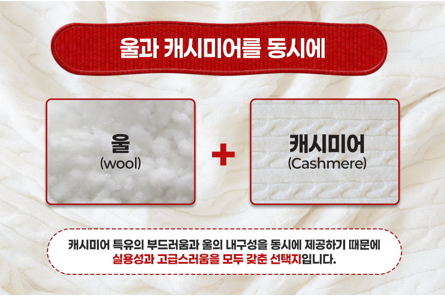 최근에는 울과 캐시미어를 혼합한 제품이 인기를 끌고 있습니다. 캐시미어 특유의 부드러움과 울의 내구성을 동시에 제공하기 때문에 실용성과 고급스러움을 모두 갖춘 선택지입니다. 혼합 비율에 따라 가격대가 다양하며, 캐시미어 비율이 높을수록 더 부드럽고 따뜻합니다.
